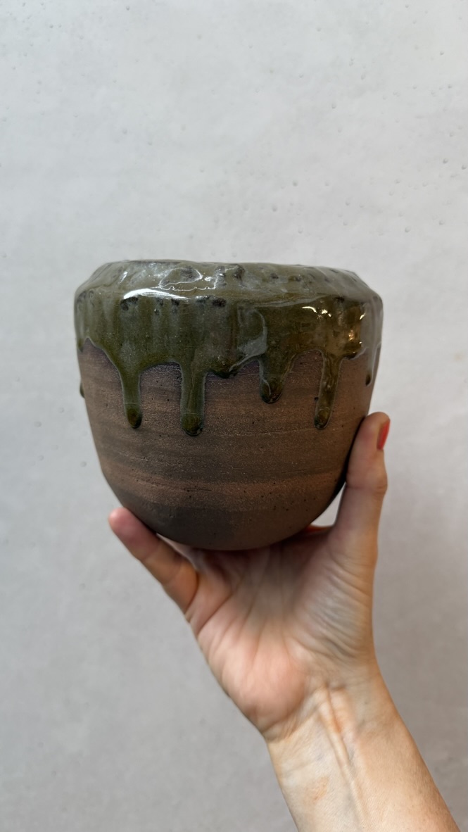 Formed from local red clay and sustainably high-fired, the piece is finished with a soft green glaze that echoes nature’s calm. Its organic openings allow flowers to rest freely, yet the object stands just as confidently on its own, as a sculpture.